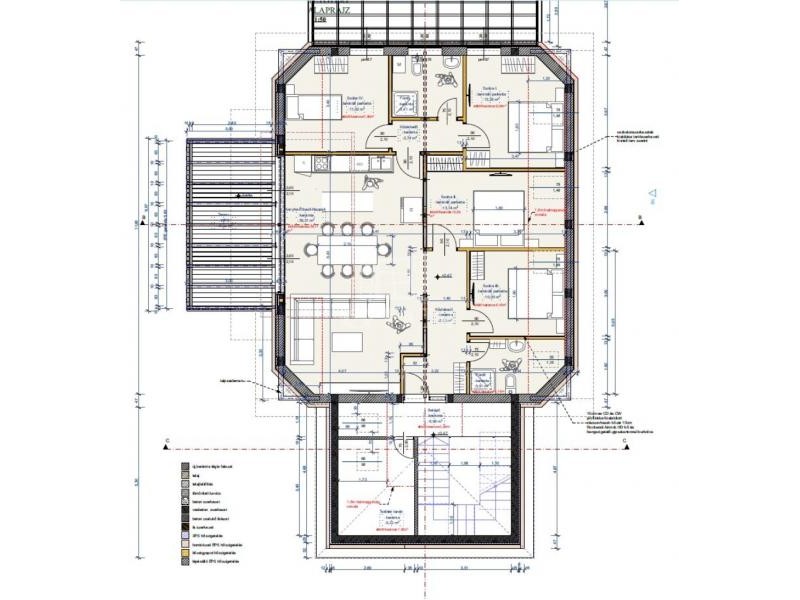 - A bejárat teljesen elkülönítetten került kialakításra, a belső lépcsőházból jutunk fel az emeletre, így a lakások zavartalanul használhatók.