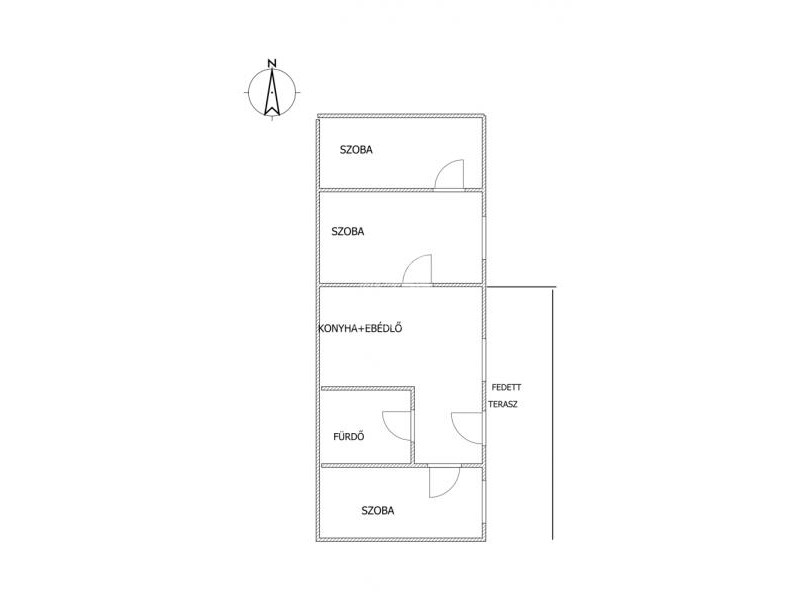 A házrészben 3 szoba, konyha + ebédlő, fürdőszoba, valamint a bejárat előtt fedett terasz található, amely kellemes pihenőhelyet biztosít.