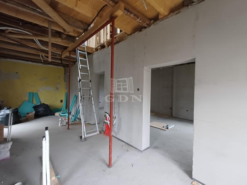 Baján közkedvelt városrészben eladó 120 m²-es, felújítás alatt álló ikerház! Baja kedvelt részén kínálunk megvételre egy 120 m²-es, kb. 70%-os készültségű ikerházat. Az ingatlan felújítása során már elkészült az új villany- és vízhálózat, leállások, konyha és fürdőszoba, klíma, padlófűtés, kandalló kéménybekötése, új nyílászárók, valamint a tetőszerkezet is megújult. Elektromos ellátás: 3×25 A. Kialakítás: Földszint: nappali–étkező, konyha, 1 szoba, fürdőszoba, külön WC, előtér Tetőtér: 1 szoba, fürdőszoba A 393 nm-es telken található egy különálló kisebb épület, amely nyárikonyhának vagy tárolónak is alkalmas, valamint a nagykapuval szemben egy garázs építésére előkészített alap. Ideális választás azoknak, akik saját igényeik szerint szeretnék befejezni új otthonukat jó környéken. Irányár:59.000.000Ft