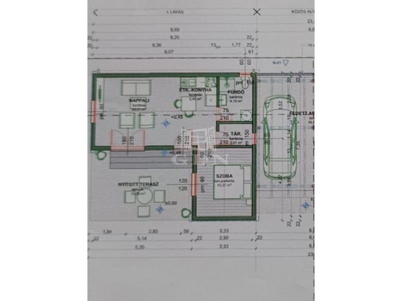 -fedett gépkocsi beálló