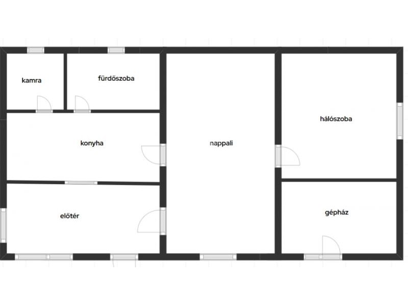 A fő épület 100 nm és szoba, konyha, nappali, fürdőszoba, kamra és előtérből áll. Másik épületben szintén szoba, konyha, fürdőszoba és 2 garázs található.
