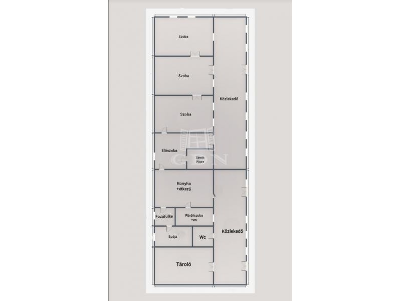 Az ingatlan hosszanti elrendezésű, masszív építésű, több bejárattal rendelkező, így akár kétgenerációs otthonná is alakítható.
