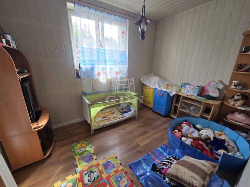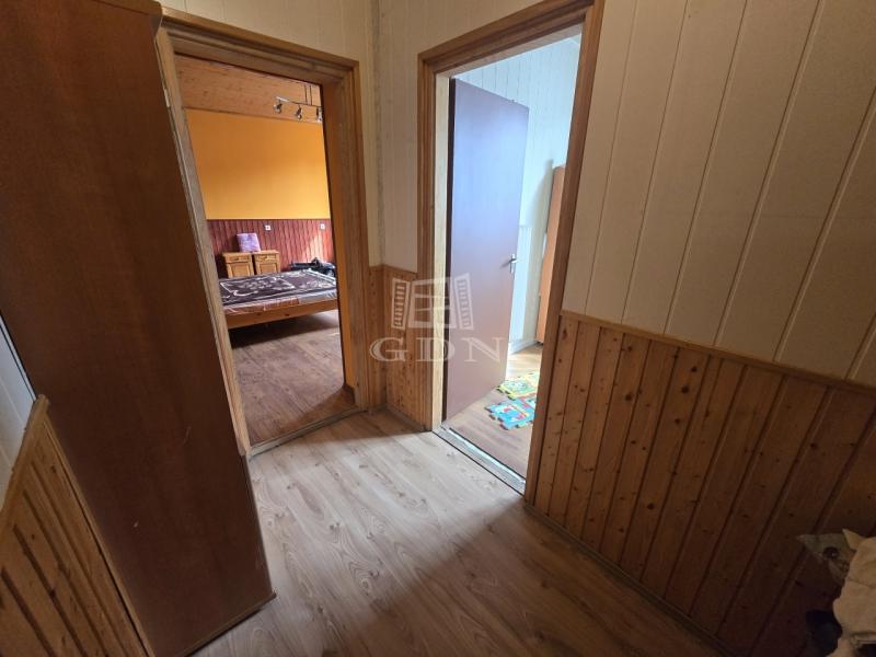 Az ingatlan 135 m²-es, vegyes falazatú családi ház, mely kialakításának köszönhetően kétgenerációs életformára is kiválóan alkalmas. A két lakrész teljesen külön bejárattal rendelkezik, ugyanakkor egy középső ajtón keresztül az épületen belül is van átjárási lehetőség. Az első részben három szoba, tágas konyha étkezővel, folyosó, külön WC, fürdőszoba, valamint a nagyobb szobából nyíló két gardróbhelyiség található. A ház második lakrésze egy közlekedőből, két szobából, főzőfülkéből és fürdőszobából (WC-vel) áll, így akár önálló lakrészként is funkcionálhat. A nyílászárók részben fa, részben műanyag szerkezetűek, a fűtés pedig vízteres kandallórendszerrel megoldott.