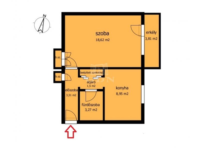 A lakáson belül három beépített szekrény is található, valamint tartozik hozzá egy 4 négyzetméteres, zárható pince rész (tároló) is.