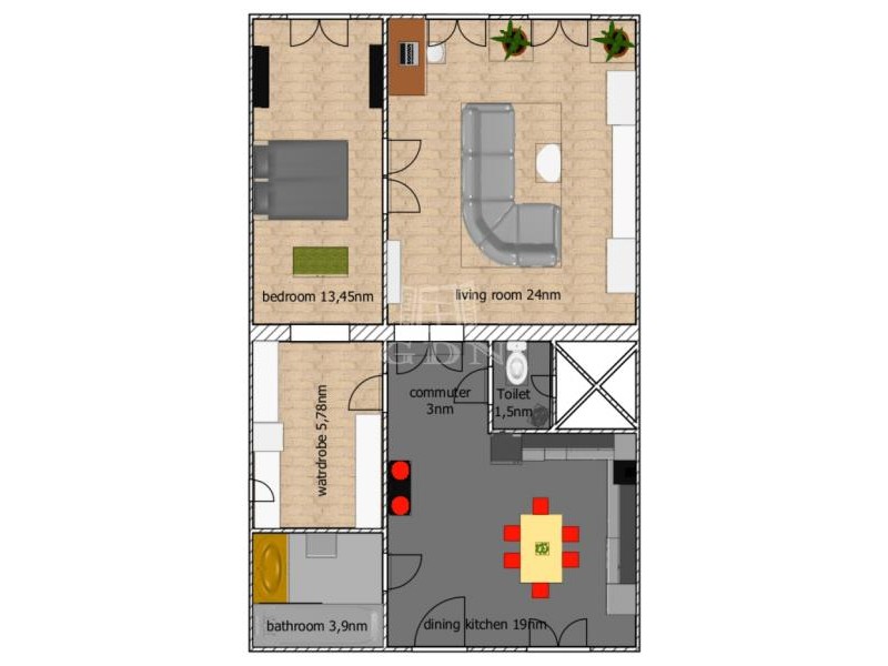 - átépítést követően nagyméretű gardrób és mosókonyha kialakítás,