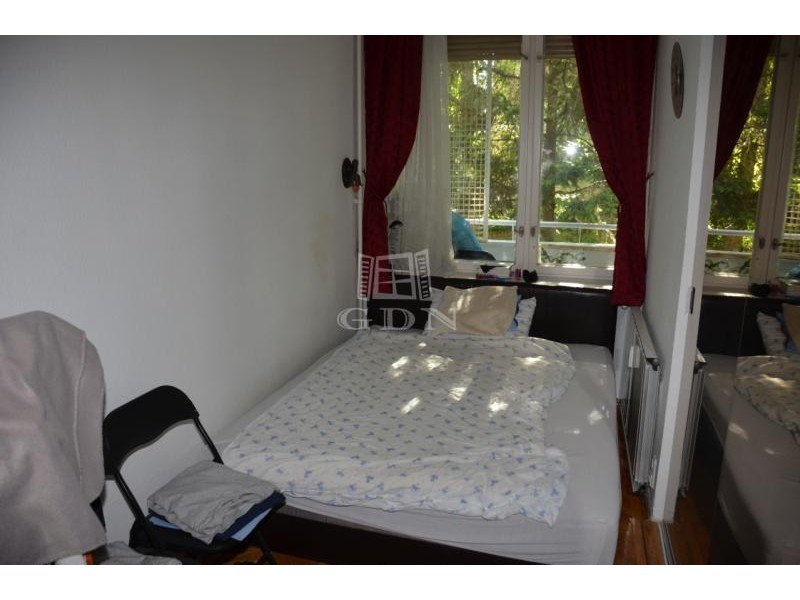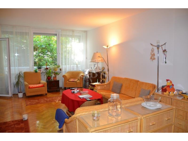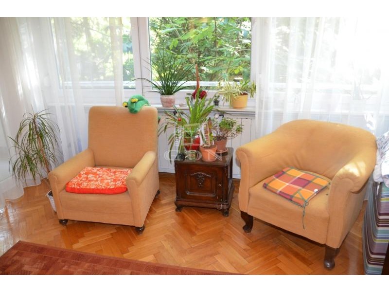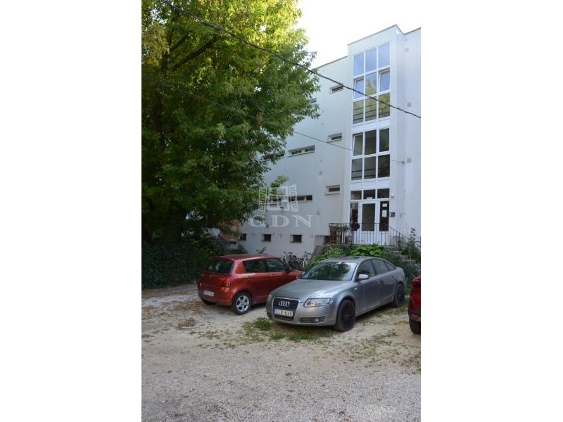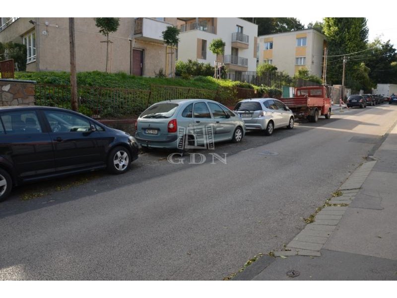 A társasház rendezett, a lakáshoz udvari autóbeálló is tartozik, az utcán a parkolás ingyenes — ami Budán különösen nagy előny.