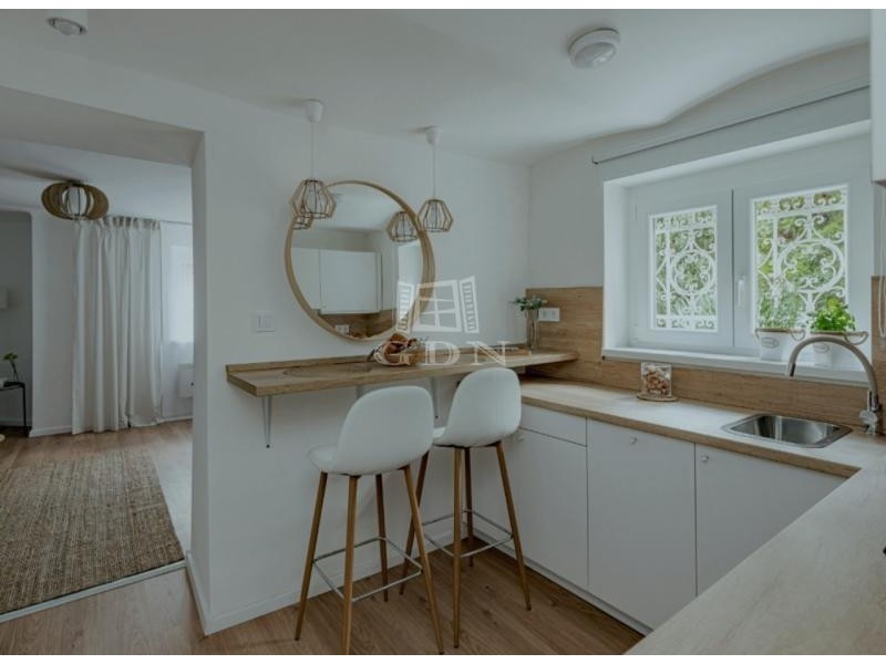 Csendes, zöldövezeti, parkos kertben lévő, teljesen felújított félszuterén lakás eladó