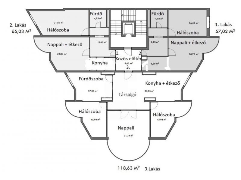 • Nagy alapterületű, több egységre bontható lakás – akár három különálló lakás is kialakítható