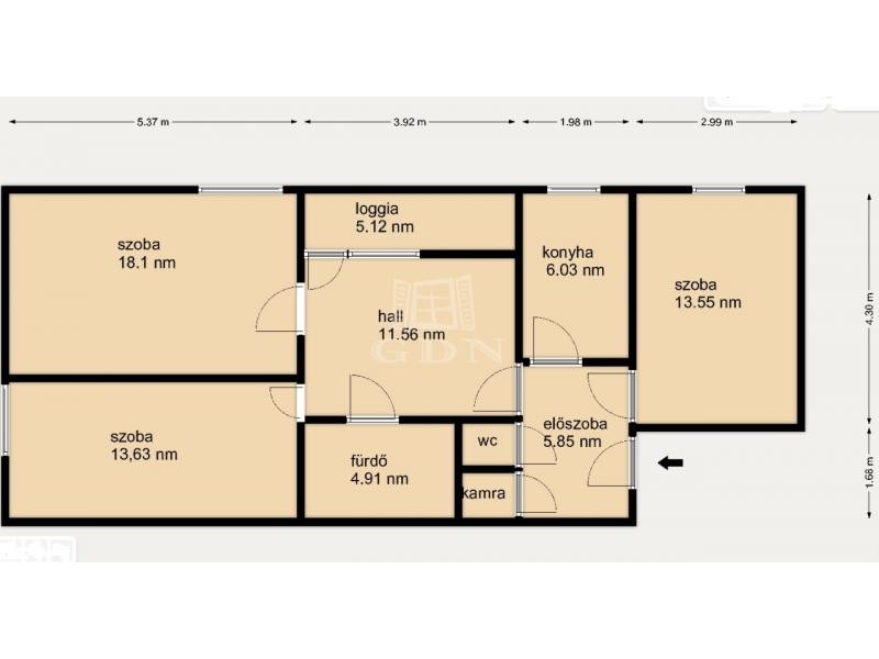 A lakás praktikus elosztású, világos terekkel rendelkezik, a szobák külön nyílnak, így családok számára vagy akár befektetésként is kiváló választás.