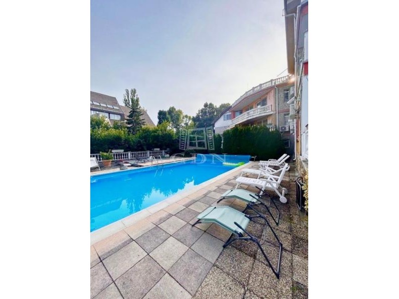 A társasház kertje igényesen parkosított, nagy területen helyezkedik el, ahol egy nagyméretű ÚSZÓMEDENCE, valamint egy SZAUNA is kialakításra került. A kertet kertész gondozza.