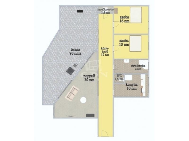 A teremgarázs szinten található egy 70 négyzetméteres, saját, zárható, tároló helyiség, melynek ára további 5 M Ft.