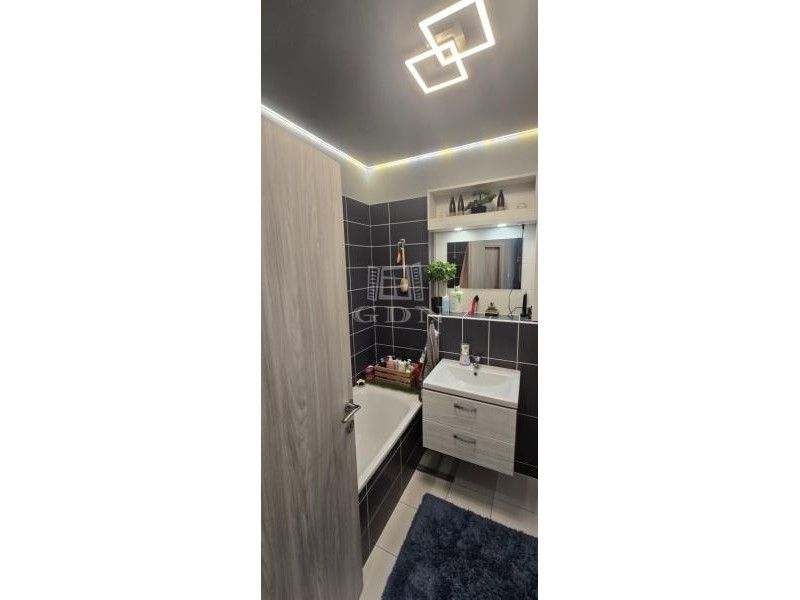 A két külön nyíló hálószoba jól szeparált, így ideális akár kisgyermekes családnak, akár otthonról dolgozó párnak. A fürdőszoba és a külön WC modern burkolatai, valamint a gépesített konyha igényes kivitelezése tovább erősíti a harmonikus összképet.
