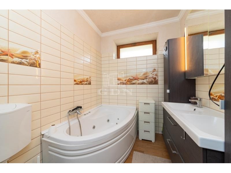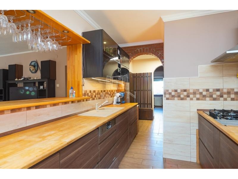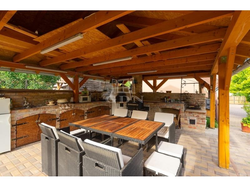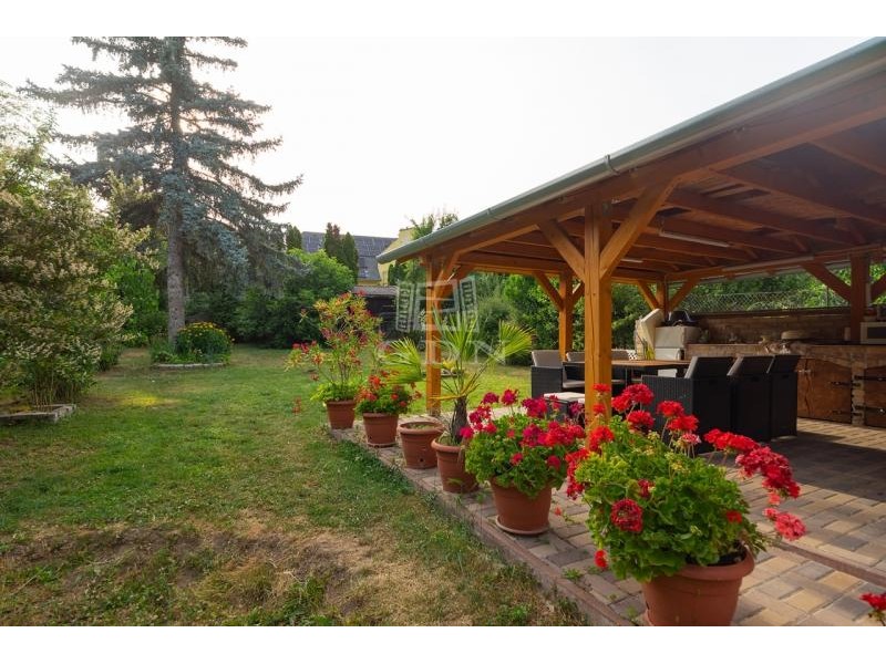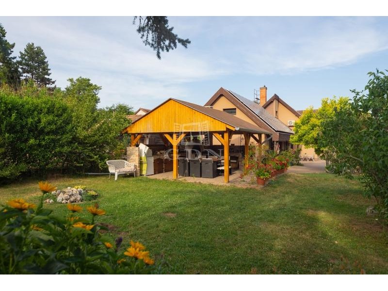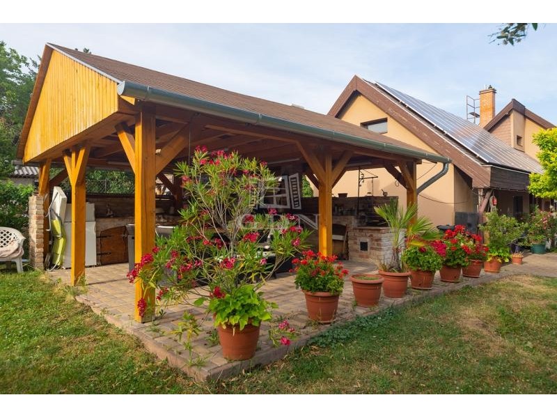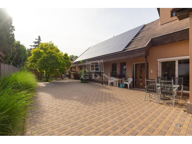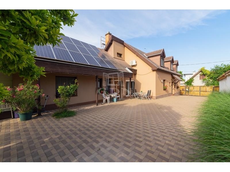 Budapest III. kerületében, Békásmegyer Ófalu városrészben, kiváló közlekedés és ellátottság mellett, kertvárosi környezetben, csendes utcában, 10 perc sétára Békásmegyer központjától, 809 m2-es összközműves telken, 1990-ben, újjáépített, két lakrészből álló, (35 nm-es, 1 szobás, étkező konyhás minigarzon, és egy 172 nm-es nappali + 3 hálószobás, konyhás, étkezős házrész ), összesen 207 m2-es lakóterületű, 2 szintes, dupla komfortos, kiváló elosztású, külön nyíló szobás, napos-világos, D-NY-i tájolású, alacsony fenntartású, 8,5 KW napelem rendszerrel támogatott, gázcirkó fűtésű, jó állapotú, 2017-ben új gázkazánra, és ablakokra cserélt, szigetelt, klimatizált, családi ház, beépített, gépesített konyhával, fűtött garázzsal, közvetlenül a házból megközelíthető 40 m2-es kövezett pince tárolóval, rendezett kerttel, igényesen kialakított, fedett terasszal, nyári konyhával, rugalmas költözéssel eladó.