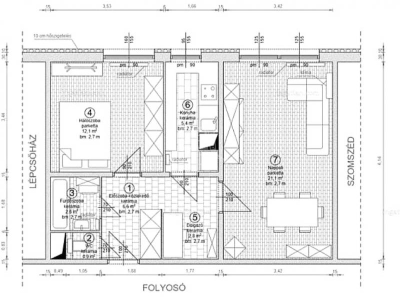 III. ker, Kaszásdűlőn, csendes, nyugodt környezetben eladó egy 52 m²-es, 2 szobás, 7. Emeleti, BERENDEZET,IGÉNYES, Felújított téglalakás,kifizetett panelprogramos, akadálymentes, két liftes társasházban. A lakás igényesen felújított állapotú, hűtő-fűtő GREE klímával felszerelt, külön fürdővel és WC-vel, összkomfortos kialakítással. A társasház 2011-ben részt vett a panelprogramban, amelynek keretében a ház 10 cm külső szigetelést, a lakások egyedi fűtésmérőt, valamint új lapradiátorokat kaptak. Ennek köszönhetően a rezsiköltség alacsony, a panelprogram anyagilag rendezett. A lakás további felújításai: magas minőségű acél biztonsági bejárati ajtó konyha és WC 2021-ben teljes körűen felújítva szobák falai glettelve, igényesen festve műanyag nyílászárók redőnnyel és szúnyoghálóval A közös költség 17 000 Ft/hó, a fűtés távfűtés egyedi méréssel, kiegészítve klímával. A környék infrastruktúrája kiváló: bevásárlási lehetőségek, gyógyszertár, orvos, posta, pékség, óvoda, iskola mind néhány percen belül elérhetők. A Graphisoft Park kb. 10 perc sétára található. Közlekedése kiváló: H5 HÉV, több buszjárat, éjszakai járatok, valamint az 1-es villamos és a fonódó villamoshálózat is könnyen elérhető. Autóval a Szentendrei út gyorsan megközelíthető, parkolás utcán, fizetős övezetben lehetséges.