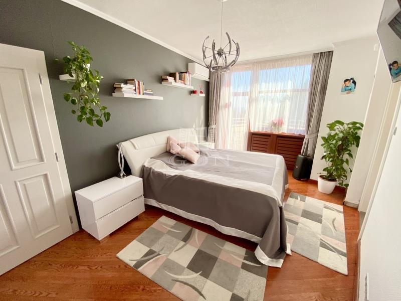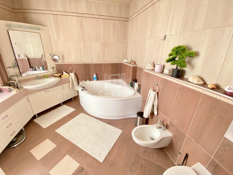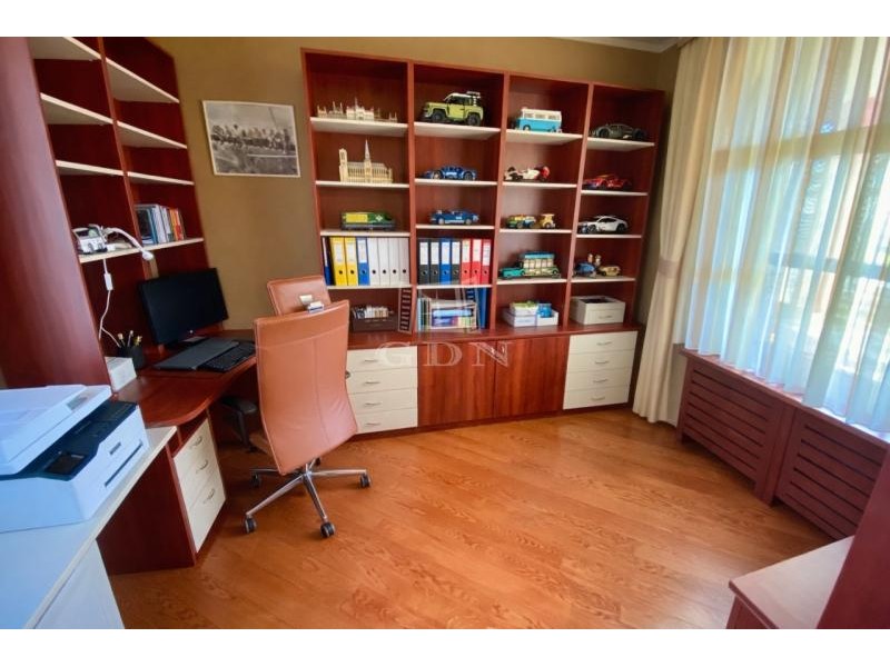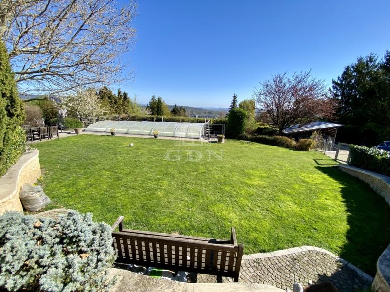 Exkluzív, panorámás családi ház eladó Testvérhegyen Budapest III. kerületének egyik legkedveltebb, hegyvidéki részén, Testvérhegyen eladó egy újszerű, prémium kialakítású családi ház, amely a nyugalom és a magas szintű életminőség tökéletes egyensúlyát nyújtja. A 2000 négyzetméteres, intim telken elhelyezkedő, 443 négyzetméteres ingatlan elvehetetlen, örök panorámával rendelkezik. A 2006-ban épült otthon tágas, világos terekkel és közel háromméteres belmagassággal biztosítja a valódi luxusérzetet. A ház minden részletében a kényelmet szolgálja: a mennyezeti és padlófűtés, valamint a központi hűtés-fűtés rendszer egész évben ideális klímát biztosít, míg a belső lift diszkrét eleganciával köti össze a szinteket. Az alsó szinten a teljes gépészet, tárolók és a ház működését kiszolgáló helyiségek kaptak helyet, míg a földszinten a mindennapi élet központja tárul elénk: egy tágas, amerikai konyhás nappali étkezővel, kamrával kiegészítve, dolgozószoba, valamint egy külön fürdőszobás vendégszoba biztosítja a kényelmet. A szintet egy kétállásos garázs, háztartási helyiség, valamint egy szauna zuhanyzóval teszi teljessé, miközben a nagy belmagasságú közlekedők tovább erősítik a térérzetet. Az emeleten a privát élettér kapott hangsúlyt, ahol négy hálószoba, két hidromasszázs káddal felszerelt fürdőszoba, gardrób és egy elegáns master bedroom kialakítás várja az új tulajdonost. Az ingatlan műszaki tartalma is kiemelkedő: központi porszívó és szellőztető rendszer, prémium fa nyílászárók hőszigetelt üvegezéssel és szúnyoghálóval járulnak hozzá a magas komfortérzethez. A kültéri medence és a zavartalan panoráma tovább emeli az ingatlan exkluzivitását, miközben a környezet csendes, zöldövezeti jellege valódi menedéket kínál a város zajától — mindezt úgy, hogy a központ könnyedén elérhető marad.