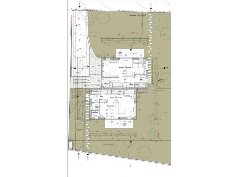 Az ikerház másik fele hasonló elrendezésű, kisebb telekrésszel, ugyanakkor egy plusz pinceszinttel bővített, ahol egy kényelmes kétállásos mélygarázs, gépészeti helyiség és egy 8,5 m²-es tároló kap helyet. A 143 m² hasznos alapterületű ingatlan irányára 255,9 millió Ft.