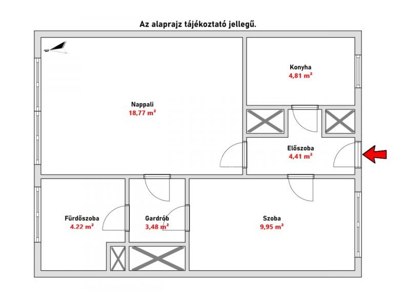 A lakáshoz tartozik egy kizárólagos használatú, kb 2 nm-es tároló is.