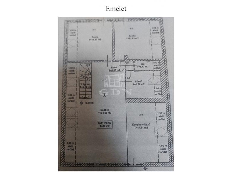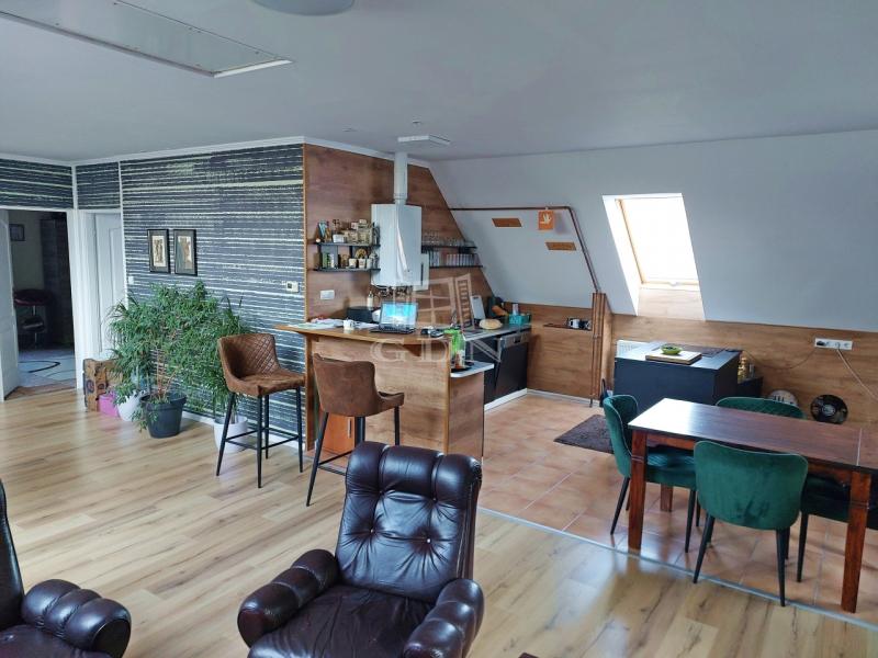 Tetőtér: 81 nm hasznos alapterület (teljes 106 nm kb) + 539 nm osztatlan közös tulajdonú kert. 127 600 000 ft
