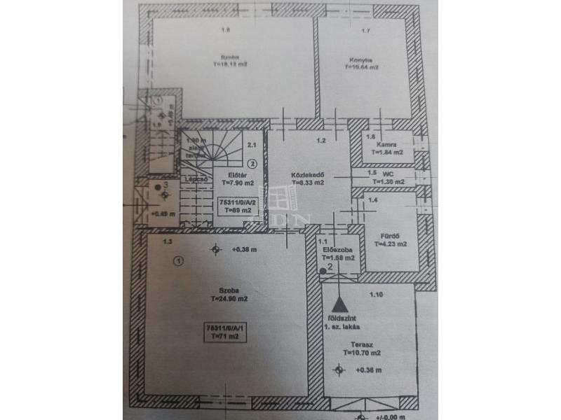 Földszínt: 71 nm + 10 nm terasz + 9,27 nm pince+ 27 nm garázs / tároló, 539 nm osztatlan közös tulajdonú kerttel. 95 000 000 ft