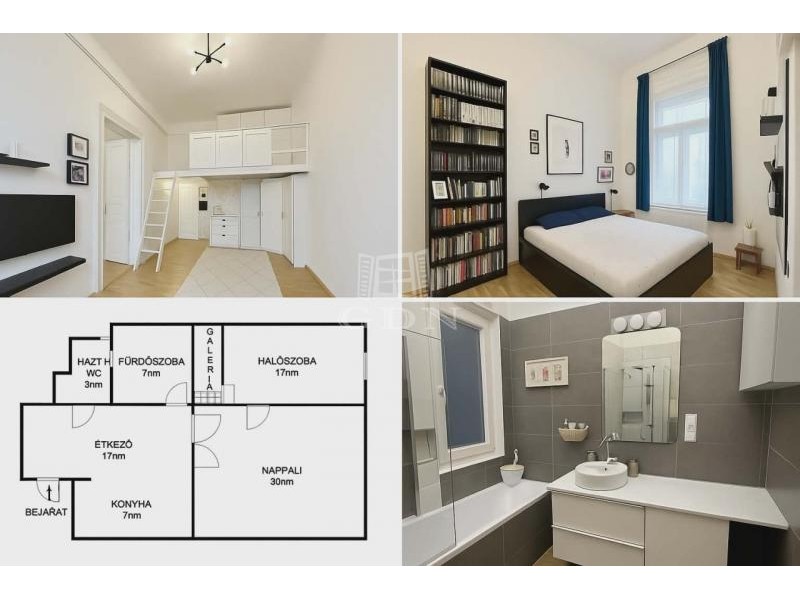 A lakásba belépve egy 30 nm-es, impozáns nappali fogad, amely igazi központja lehet a mindennapoknak. A 16 nm-es hálószoba külön galériát kapott, a 390 cm-es belmagasságnak köszönhetően kényelmesen használható plusz térrel. A 22 nm-es, világos, modern konyha tökéletes választás azoknak, akik szeretik a tágas étkező-konyhát, míg a 10 nm-es fürdőszoba és a külön 3 nm-es WC különleges kényelmet biztosít.