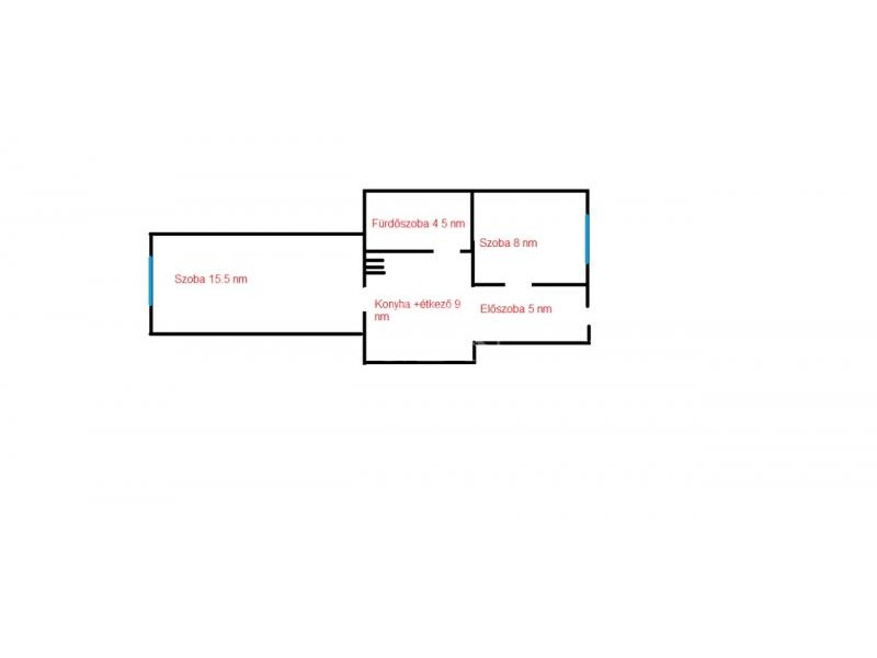 A konyha-étkezőből nyílik a 15.5 nm-es nagyobb szoba, kilátása utcai.