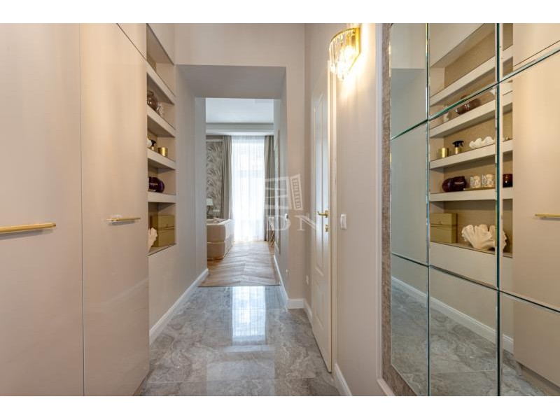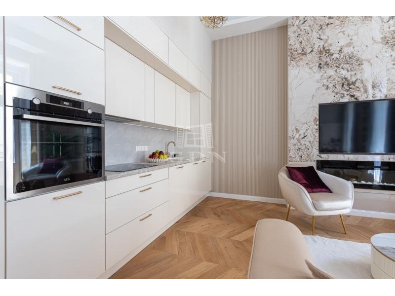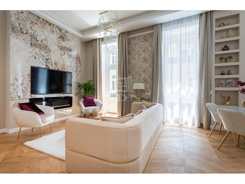 ELADÓ LUXUSLAKÁS A BELVÁROS SZÍVÉBEN – V. KERÜLET, MÉRLEG UTCA Pár lépésre a Lánchídtól egy 80 m²-es, nappali + 2 hálószobás, duplakomfortos, erkélyes álomotthon várja igényes új tulajdonosát! A 2. emeleti, teljeskörűen, prémium anyagokkal felújított lakás minden részlete a letisztult elegancia és a modern luxus találkozása. ✔ Amerikai konyhás nappali, designer enteriőrrel ✔ Két különálló hálószoba, mindegyikhez saját, stílusos fürdőszoba ✔ Erkély a csendes Mérleg utcára ✔ 4 méteres belmagasság, chevron tölgyfa parketta, egyedi világítás ✔ Prémium bútorokkal és gépekkel együtt eladó – azonnal költözhető! A fő hálószobához látványos kádas, bidés fürdőszoba, a másikhoz modern, üvegfalas zuhany tartozik. Külön vendég WC. A konyha csúcskategóriás AEG készülékekkel felszerelt, a lakásban 3 klíma, automata árnyékolók, új fa nyílászárók, teljes gépészetcsere történt. Fűtés: házközponti – közös költség 33.104 Ft/hó. Az épület Hild József egyik remekműve, patinás, mégis gondosan karbantartott, két bejárattal és lifttel. Tökéletes választás azoknak, akik kompromisszumok nélkül keresik a belvárosi, letisztult luxust — akár saját használatra, akár exkluzív befektetésként.