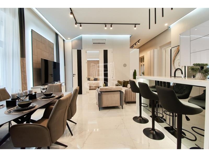 V. kerületben, az Aranykéz utcában, kiadó egy 121 m2-es, 3 szobás (2 háló + amerikai konyhás nappali), ERKÉLYES, dupla komfortos, egyedien és PRÉMIUM minőségben felújított EXKLUZÍV, LUXUS lakás.