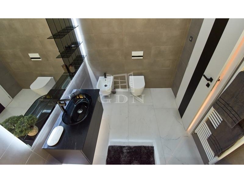 Az ingatlan igényesen BERENDEZVE, ÚJ BÚTOROKKAL, garanciális gépekkel, extrákkal (hangszigetelés, házimozi, projektor, vetítővászon, eredeti onyx bárpult, egyedi fénytechnika, automata redőnyök) felszerelve várja új bérlőjét.