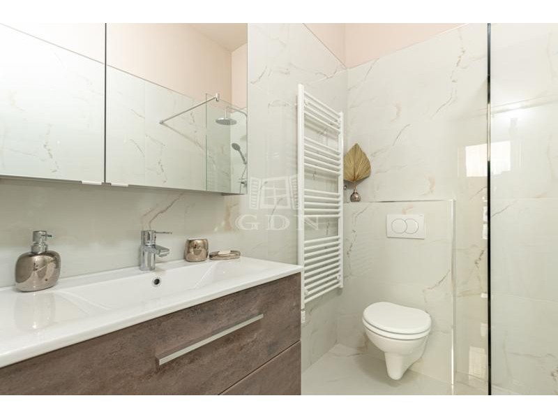 Az egyik fürdőszoba zuhanyzóval és WC-vel, a másik zuhanyzóval és mosógéppel felszerelt. A mennyezetbe épített szellőzőrendszer biztosítja a megfelelő légcserét.