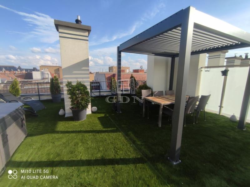 A lakótérben bruttó 92m2-en, nappali, két hálószoba, egy magas minőségben felszerelt, részben szeparált konyha és két fürdőszoba található. Az egyedi készítésű design bútorok, kristály csillárok, a vételár részét képezi. A 77m2-es tetőterasz, szaunával, jakuzzival és lenyűgöző panorámával az Operára, Bazilikára, Citadellára, tökéletes helyszín vendégek fogadásához, pihenéshez, romantikus estékhez. Pár perc sétára megtalálható az Andrássy út, továbbá számos étterem kávézó.