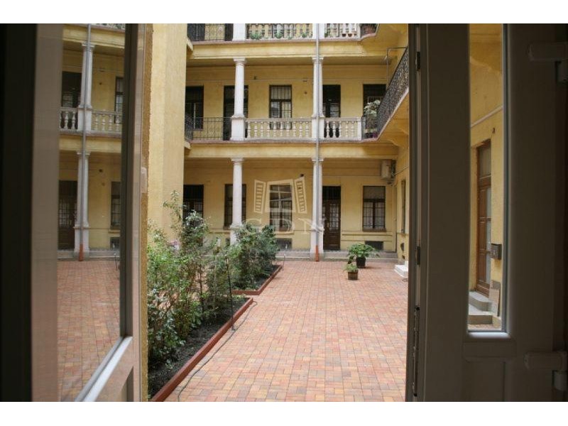 A lakás egy szép állapotú társasházban található, belső udvarra néző ablakokkal, így a belvárosi elhelyezkedés ellenére csendes, nyugodt környezetet kínál.