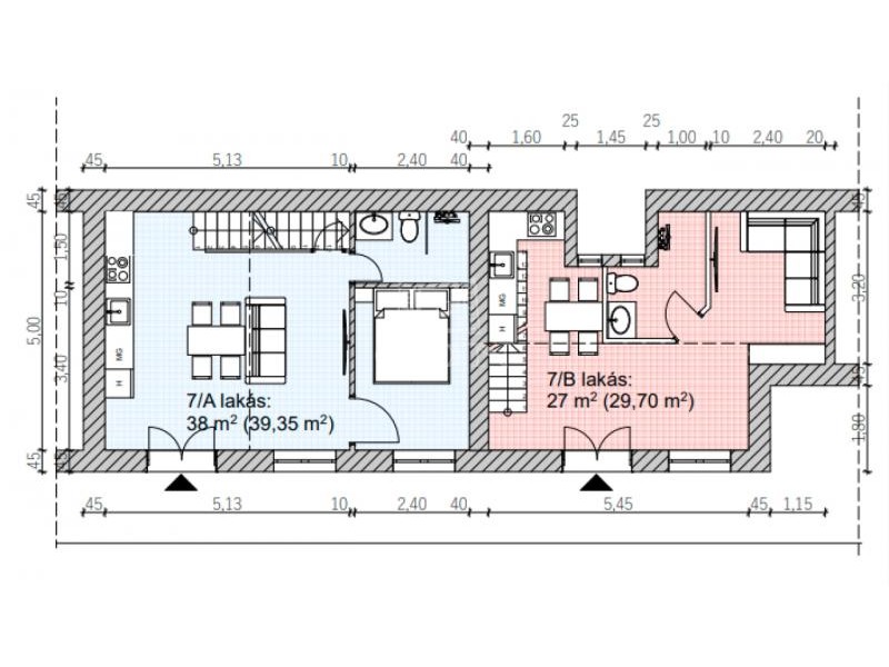 " B"- lakás rendkívül jó beosztású, hasznos alapterülete 46 nm.