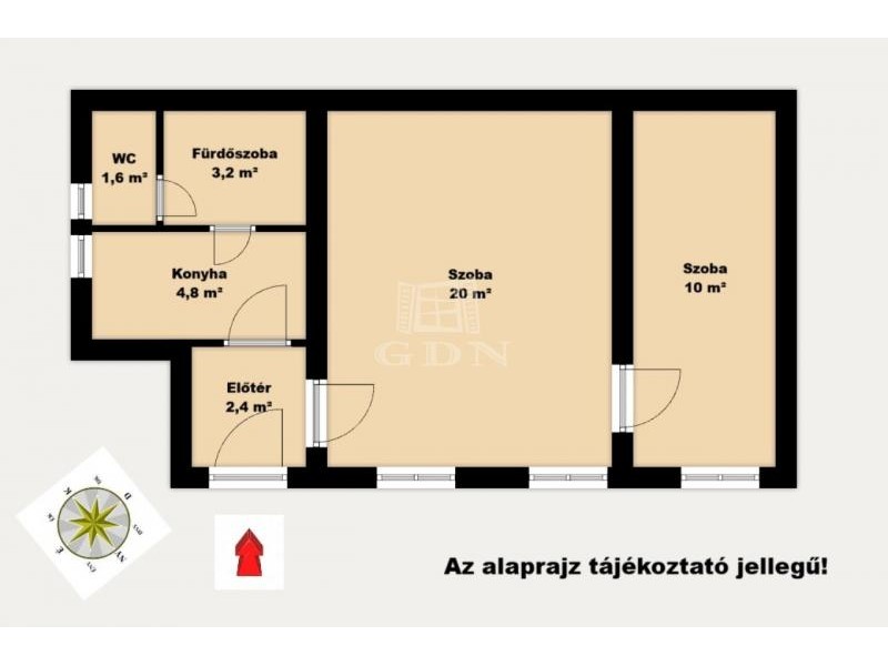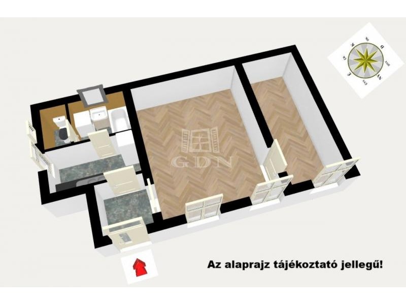 - 2 SZOBÁS elrendezés, 42 m²