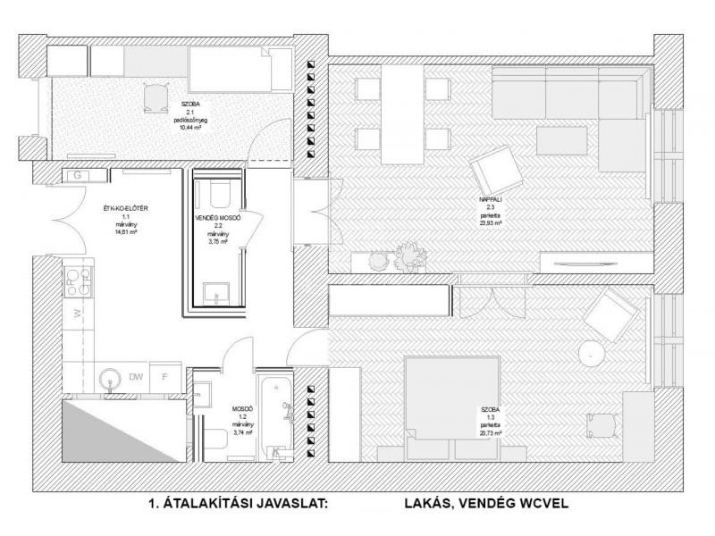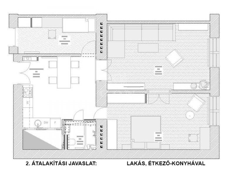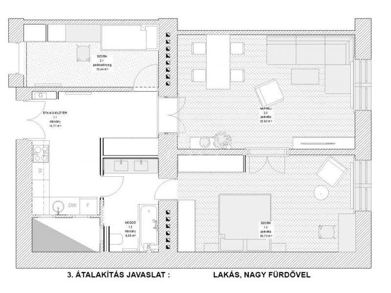 Igény esetén a két lakás könnyen egybe is nyitható, így egy 3 szobás, tágas lakást kapunk. Átalakításnál múszaki rész kiépített, nem igényel plusz munkát.