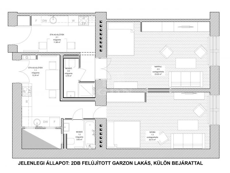 Jelenleg KÉT külön bejáratú LAKÁSként funkcionál.
