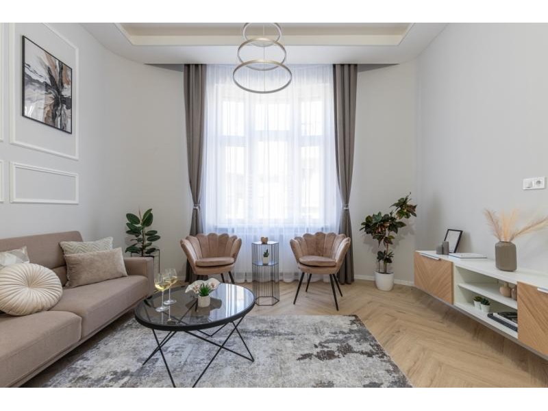 Budapest pezsgő központjában, a Dohány utca egyik legkeresettebb részén kínálunk megvételre egy 70 m²-es, prémium minőségben felújított lakást, pár lépésre a Blaha Lujza tér forgatagától.
