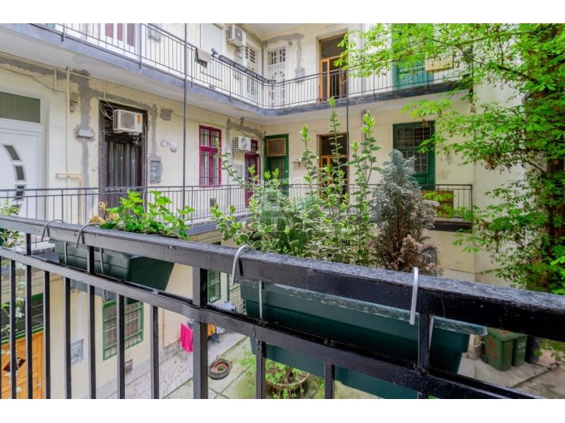 A lakás utcai nézetű, ablakai a Magyar Színházra néznek – karakteres, mégis élhető belvárosi ez a hangulat.