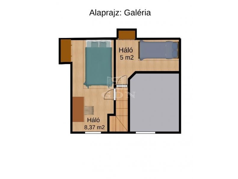 • Kétszintes kialakítás – nappali, a felső szinten hálórész és külön vendégsarok