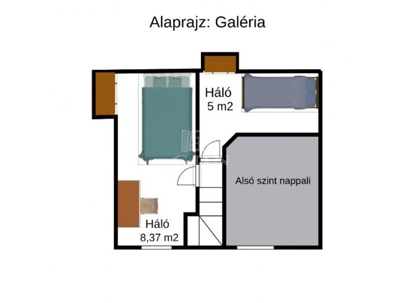 o felső szinten hálórész + külön vendégsarok