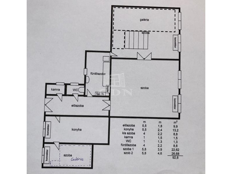 A lakás 2+1 szobás, külön konyhával, valamint nagy belmagassággal rendelkezik. Az otthon különlegessége a dupla galéria, amely kiválóan növeli a hasznos alapterületet, így ideális lehet akár dolgozósarok, hálórész vagy tároló kialakítására. A műanyag nyílászárók korszerűek, a fűtést gázkonvektorok biztosítják.
