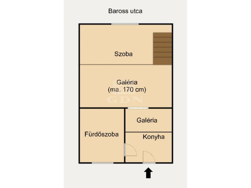 A lakás egy szobából áll, mely utcai kilátással rendelkezik.