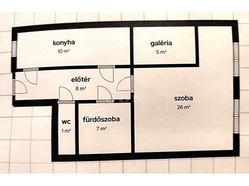 53 m²-es alapterület – az 1 szobás elrendezés jól alakítható egy beépített galériával