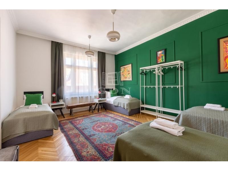 Tágas, napfényes családi otthon a Palotanegyedben! Budapest egyik legszebb belvárosi részén, a patinás Palotanegyedben, a Blaha Lujza tér közelében kínálunk megvételre egy 214 m²-es, felújított polgári ingatlant, amely ideális választás lehet nagyobb családok számára is. A lakás nagyvonalú terekkel, 3,1 méteres belmagassággal rendelkezik, és délkeleti fekvésének köszönhetően egész nap világos. Az 5 különálló szoba és 5 fürdőszoba kényelmes együttélést biztosít akár több generáció számára is, miközben minden családtagnak megmarad a saját privát tere. A 2023-ban elvégzett teljes körű felújítás (elektromos és vízvezetékek, fűtés) gondtalan beköltözést tesz lehetővé. Az ingatlan jelenlegi elrendezése rugalmasan alakítható, könnyedén klasszikus családi otthonná varázsolható. Amit a családok értékelni fognak: • tágas, jól bútorozható szobák • 5 fürdőszoba – nincs reggeli sorban állás • csendes, zárt lépcsőház, liftes társasház • kiváló közlekedés, mégis élhető környezet • iskolák, egyetemek, kulturális intézmények, parkok a közelben Ez az ingatlan ideális választás azoknak a családoknak, akik belvárosi elhelyezkedésre, térre, minőségre és hosszú távú értékállóságra vágynak.