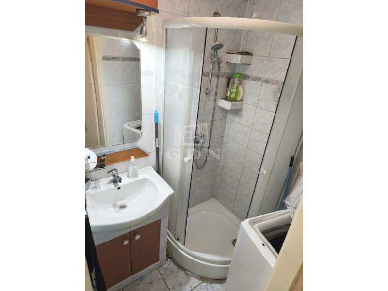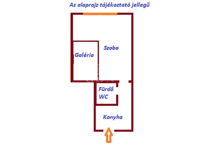 A bejárat a körfolyosóról a konyhába nyílik, a wc és a zuhanyzós fürdőszoba külön van. A szobában fekvőgaléria található.