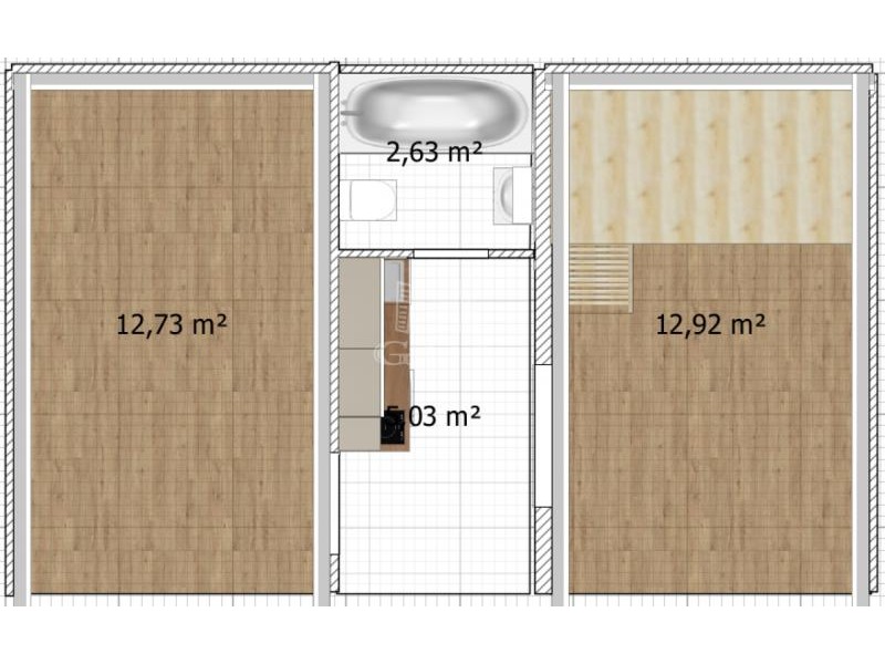 A lakás elosztása nagyon praktikus: konyha, fürdőszoba és KÉT KÜLÖN NYÍLÓ SZOBA, amelyből az egyik galériával ellátott.
