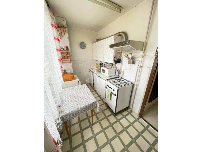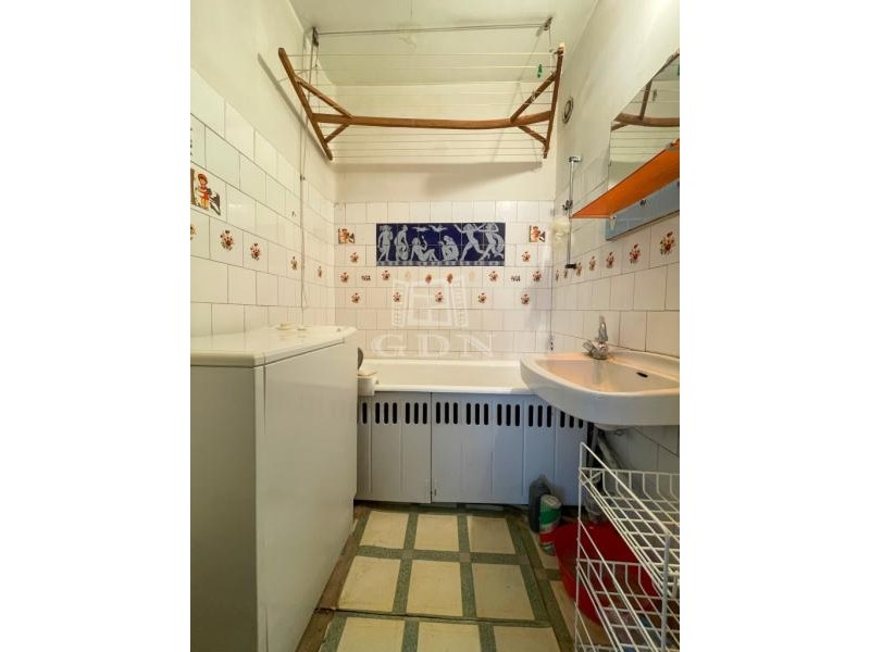 A bejárattól rögtön jobbra egy hálószoba, tovább menve, külön WC, kádas fürdőszoba, jobbra az ablakos világos konyha, és még egy félszoba található.
