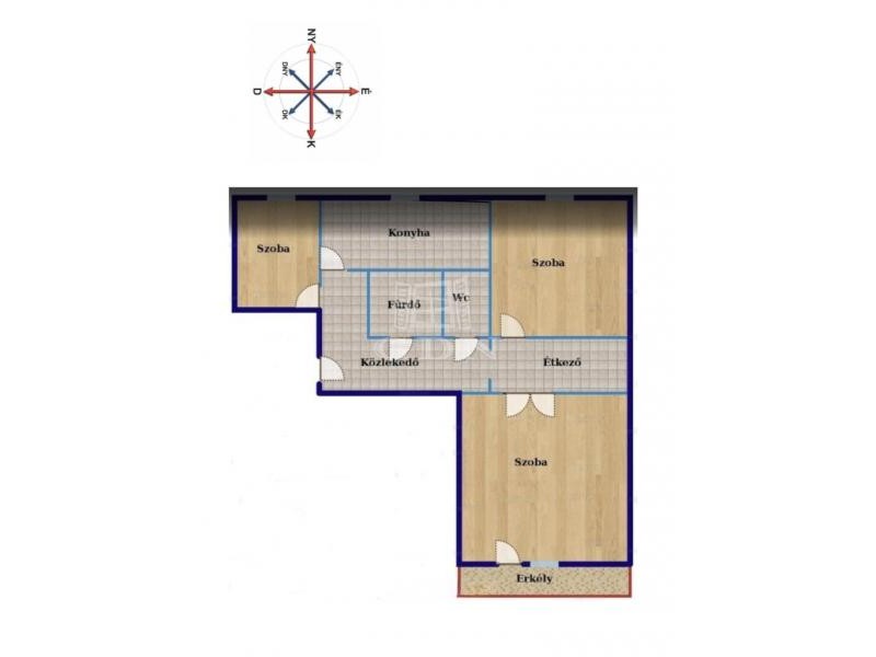 Az ingatlan nagyon jó elosztású. A bejárattól Balra nyílik a nappali, ahonnan kilépünk az erkélyre, ide jó időben kényelmesen kiülhetünk egy reggeli kávét elfogyasztani.
