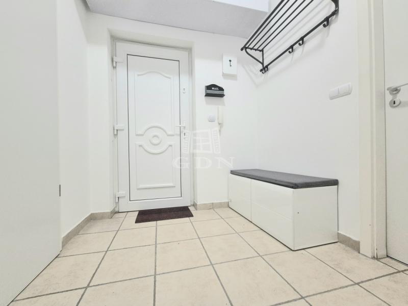A lakáshoz tartozik és a vételáron felül 6 millió forint ellenében kötelezően megvásárolandó a mélygarázsban egy saját-zárható tároló és egy beálló is.