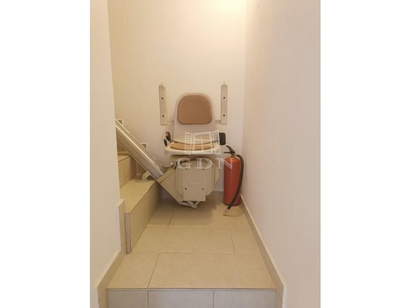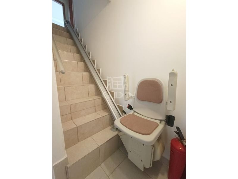 A két szint teljesen külön bejárattal és önálló funkcióval is használható, közöttük mozgáskorlátozott lépcsőlift biztosít akadálymentes közlekedést.