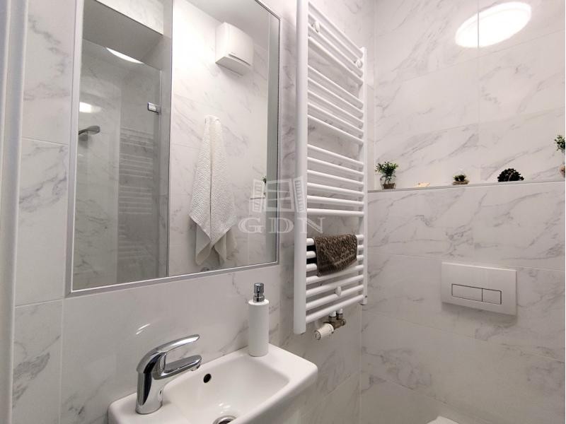 Panoráma. Fény. Nyugalom. Újbudán, Kelenföldön, az Aliz utcában, a Budai Boleró lakóparkban eladó egy 8. emeleti, délkeleti tájolású, 60 m²-es (nappali + 2 háló) lakás, amelyet egyedi igények szerint alakítottak ki – jól élhető terekkel, valódi magánszférával. Ez az a lakás, ahol a nap végigkíséri a napodat: reggeltől estig világos, napfényes terek, nyugodt hangulat, szép kilátás. A nappali és a terasz kapcsolata adja az otthon központját. A 14 m²-es fedett terasz nem csak kiegészítő – itt lehet reggelizni, dolgozni vagy egyszerűen csak megállni egy pillanatra. A lakás elosztása kifejezetten jó: két főnek ideális, de akár egy kisgyermekkel is kényelmesen élhető, úgy, hogy a külön terek miatt a nyugalom és a privát szféra is megmarad. A fő hálóhoz külön gardrób tartozik, mennyezetig beépített bútorokkal. A fürdőszoba kádas, a WC külön helyiségben, zuhanyzóval kialakított – praktikus, átgondolt megoldás. A lakás teljes bútorzattal és gépesítve kerül értékesítésre, így azonnal költözhető. A vételár része egy kb. 6 millió Ft értékű, kizárólagos használatú felszíni parkolóhely, zárt, sorompóval védett területen, közvetlenül az épület mellett. A lakópark rendezett, parkosított, folyamatosan karbantartott. A környék élhető és jól ellátott: Újbuda Center, közlekedés kitűnő, Duna-part 5–10 perc sétatávolságra. Ez a lakás azoknak való, akik: – szeretik a napfényt és a kilátást – fontos nekik a nyugodt, jól szervezett élettér – magánszférát szeretnének a nyüzsgés mellett A modern városi élet hangulata itt este is megjelenik – csak egy kicsit nyugodtabban. Megtekintés egyeztetéssel.
